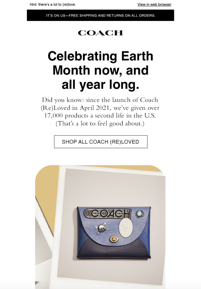 I managed all site and email copy for Coach’s sustainability initiative, Coach (Re)Loved—a circular ecosystem for refurbishing, reimagining and recycling pre-loved and damaged Coach products.